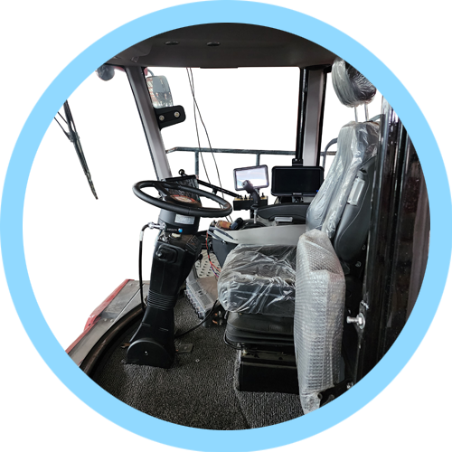 整車全部功能都可以在扶手箱電控按鍵進行操作。 增壓駕駛室寬敞明亮,保護駕駛員安全。配備豪華氣動懸浮座椅,副駕駛位。 智能車載系統(tǒng)可以清晰顯示油溫水溫轉(zhuǎn)速等基本信息并且搭配進口智能噴霧系統(tǒng)。